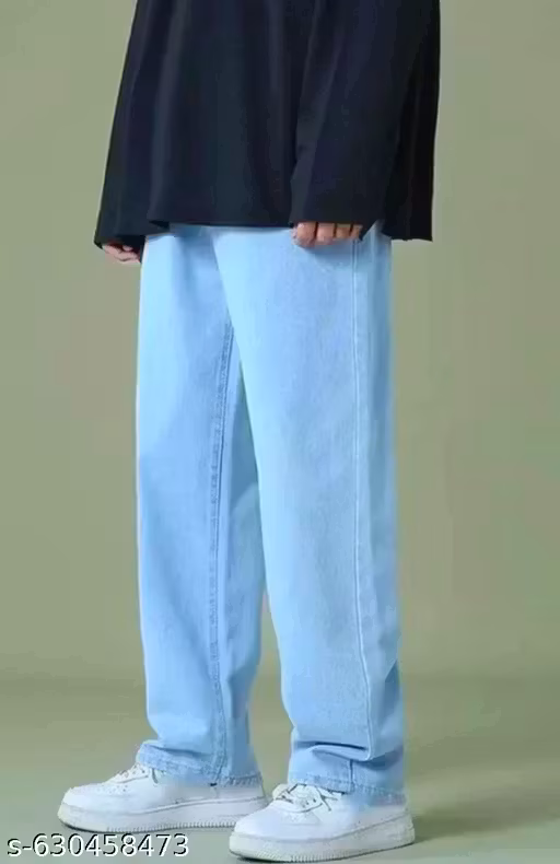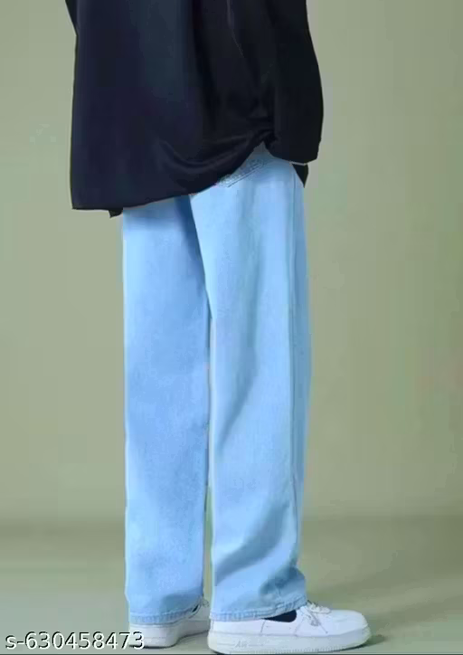 Step into comfort and style with our Light Blue Straight Fit Jeans for Men, featuring a trendy loose/baggy fit, mid-rise waist, and classic solid design — perfect for everyday casual and office wear.