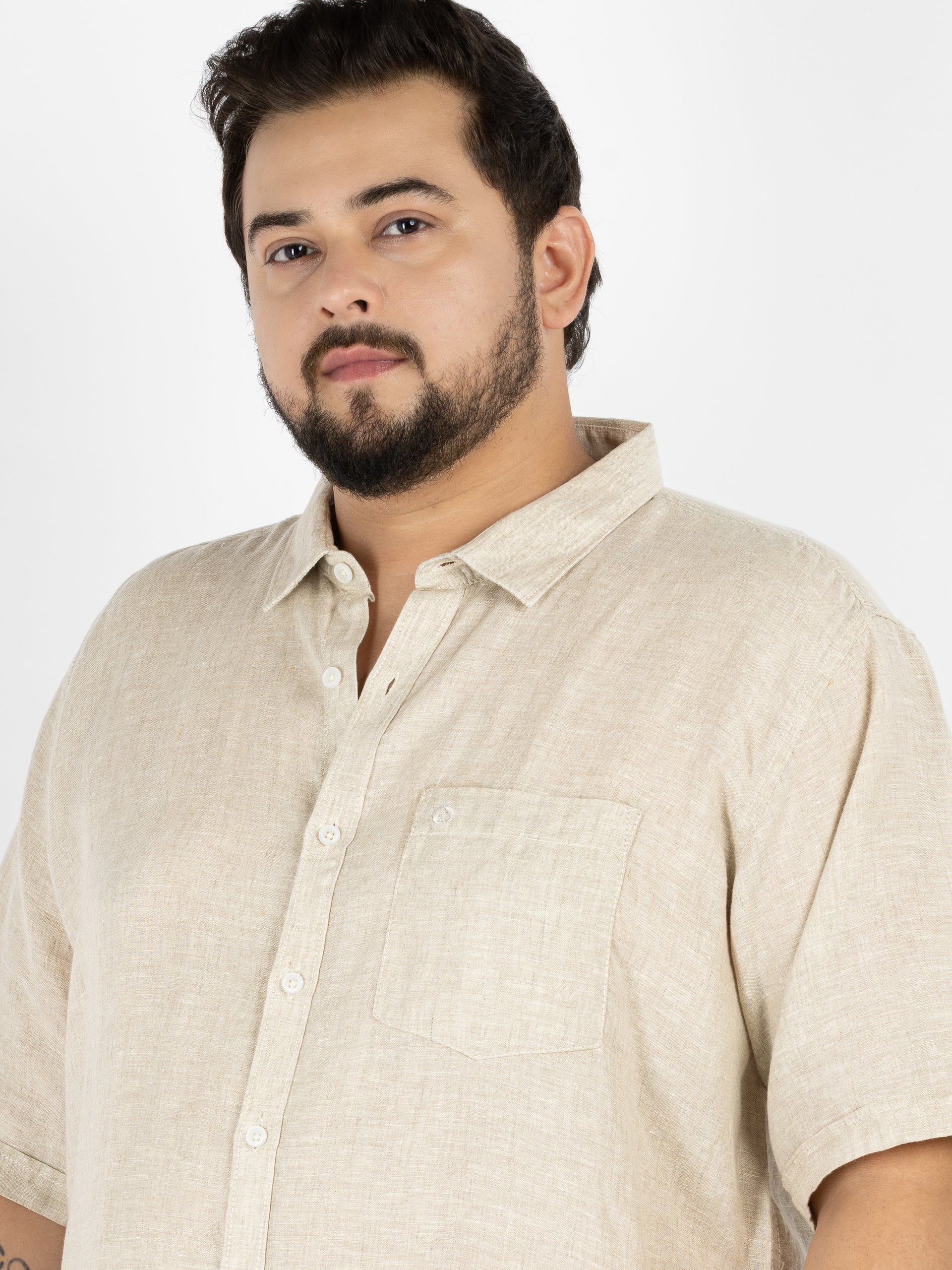 Crafted from durable, breathable linen-blend fabric, this shirt keeps you cool and comfortable throughout the day while maintaining its refined structure wash after wash. The half-sleeve silhouette and classic tailoring make it versatile enough for office days, coffee dates, weekend outings, and travel.