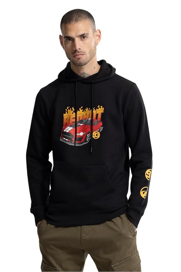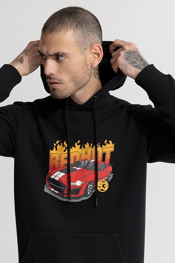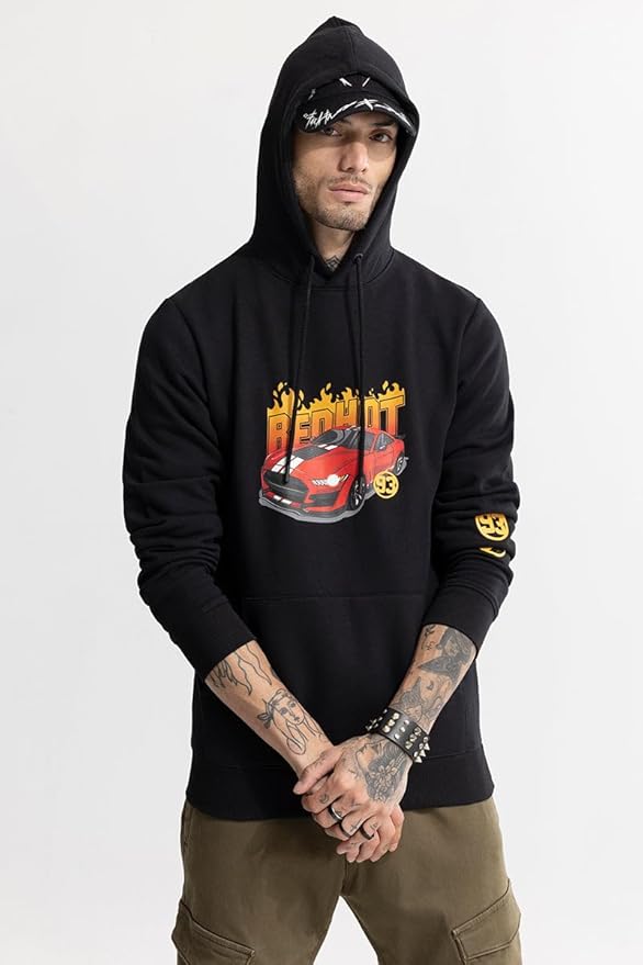 The oversized silhouette paired with a hooded neckline, full sleeves, and ribbed hemline gives a relaxed yet structured feel. The bold graphic back print adds a striking standout look, while the deep kangaroo pocket offers practicality and style.