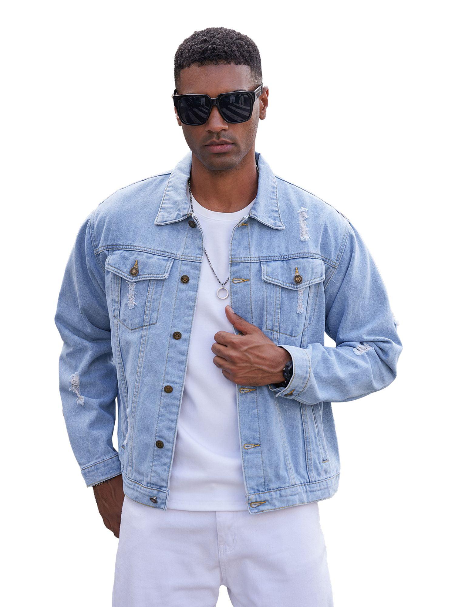 Whether you're aiming for a sporty look, a rugged street style, or a comfortable everyday outfit, this ripped denim jacket is the perfect choice to elevate your appearance.