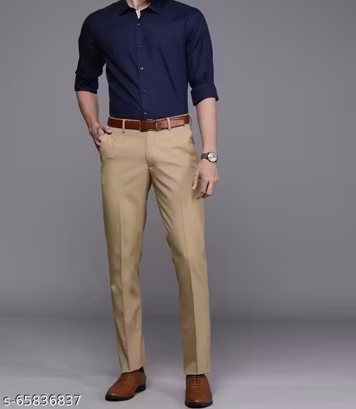 Whether you're attending a meeting, heading to a gathering, or refreshing your everyday wardrobe, these solid beige trousers are a versatile and stylish choice. A must-have for every man seeking comfort and premium style in one essential piece.