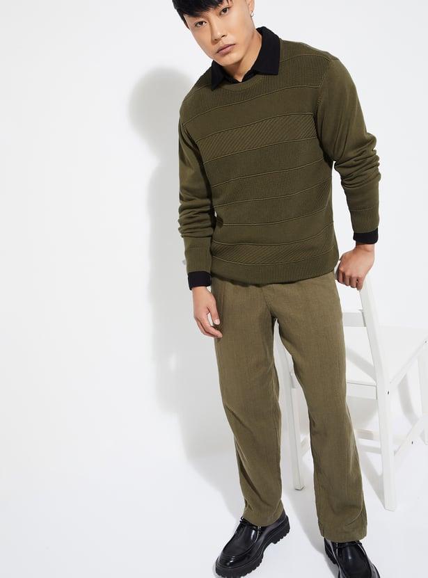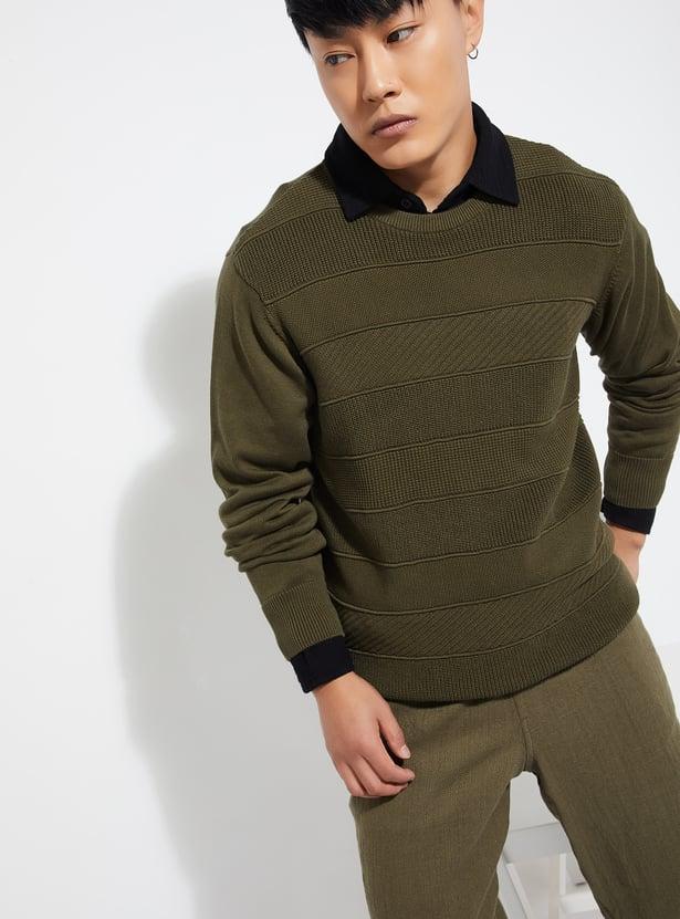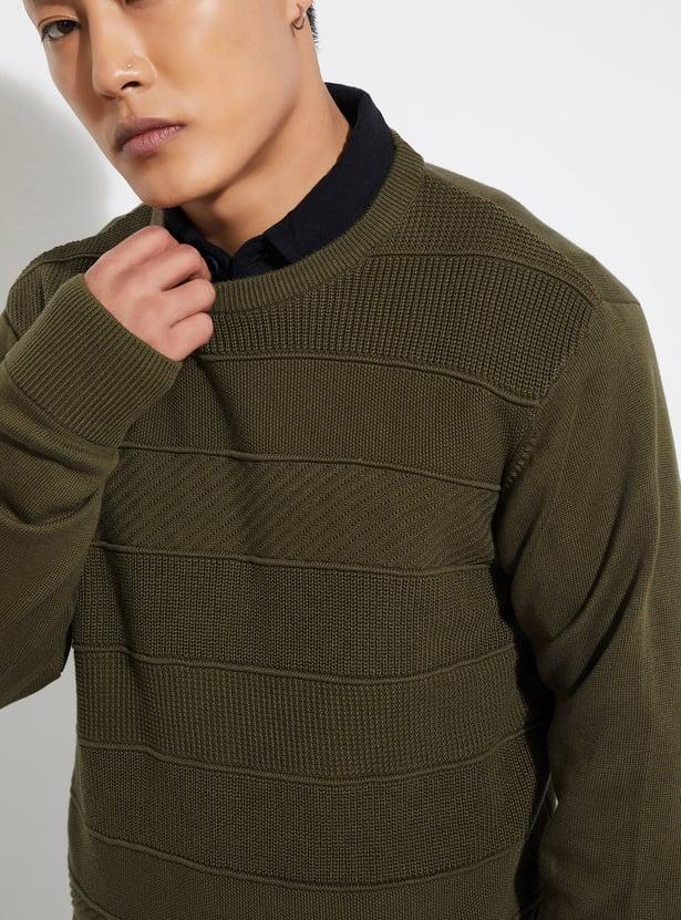 A warm and stylish textured knit sweater crafted with a ribbed crew neck, full sleeves, and a snug hem. Perfect for winter layering or standalone casual wear.