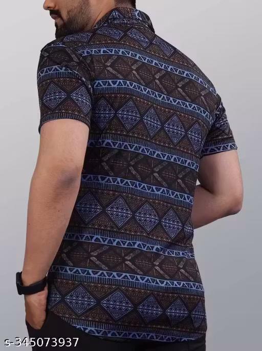 A premium black printed Lycra half sleeve shirt designed for an ultra-stylish look and all-day comfort — perfect for office, casual outings, parties, and daily wear.