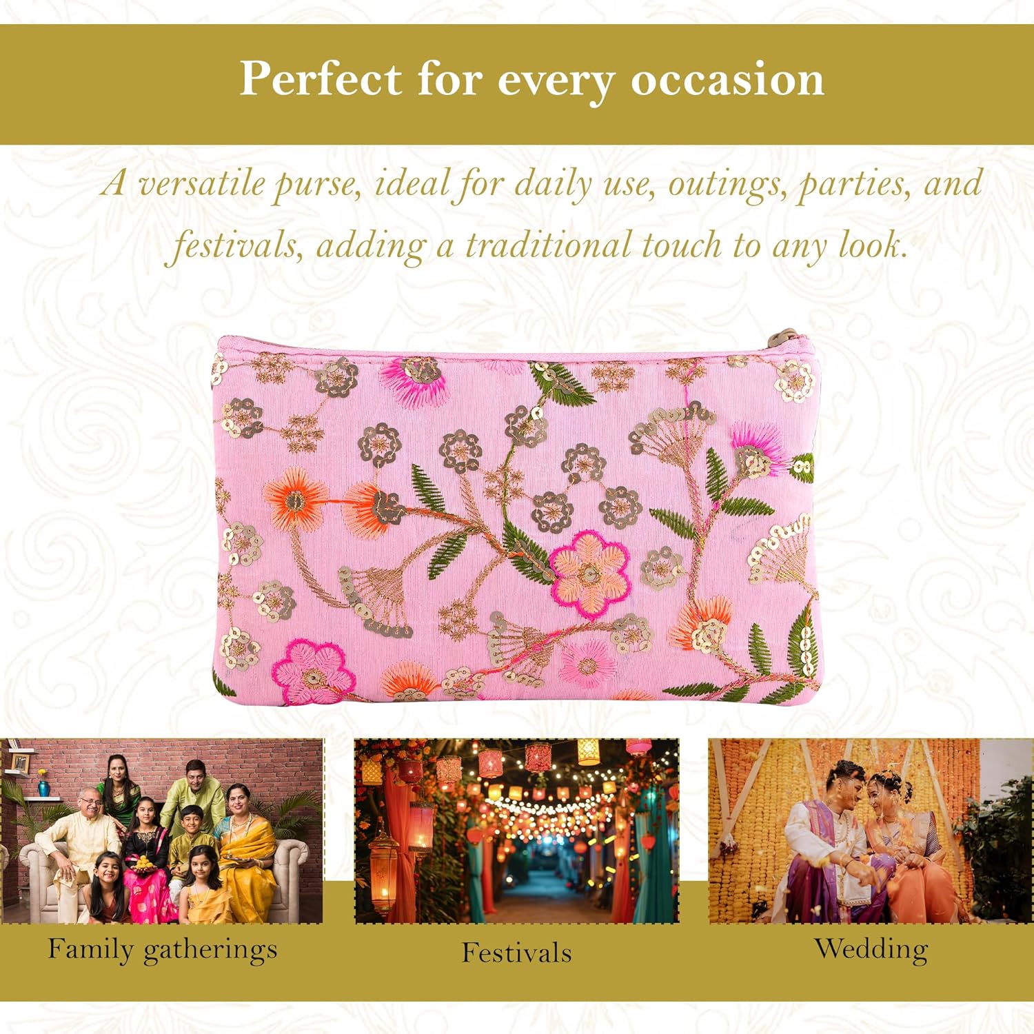 Whether you're accessorizing an ethnic outfit or seeking a practical and elegant small purse, this embroidered pouch set is an essential addition to your wardrobe.