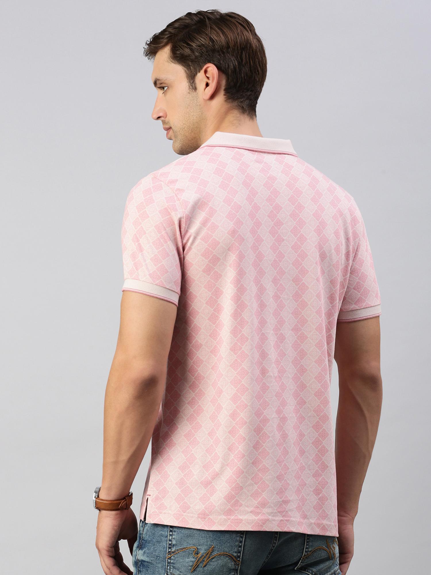 Enhance your casual wardrobe with the UrbanTraders Peach Printed Polo T-Shirt, crafted from a soft cotton blend and designed with a classic polo collar, half sleeves, and a comfortable regular fit.