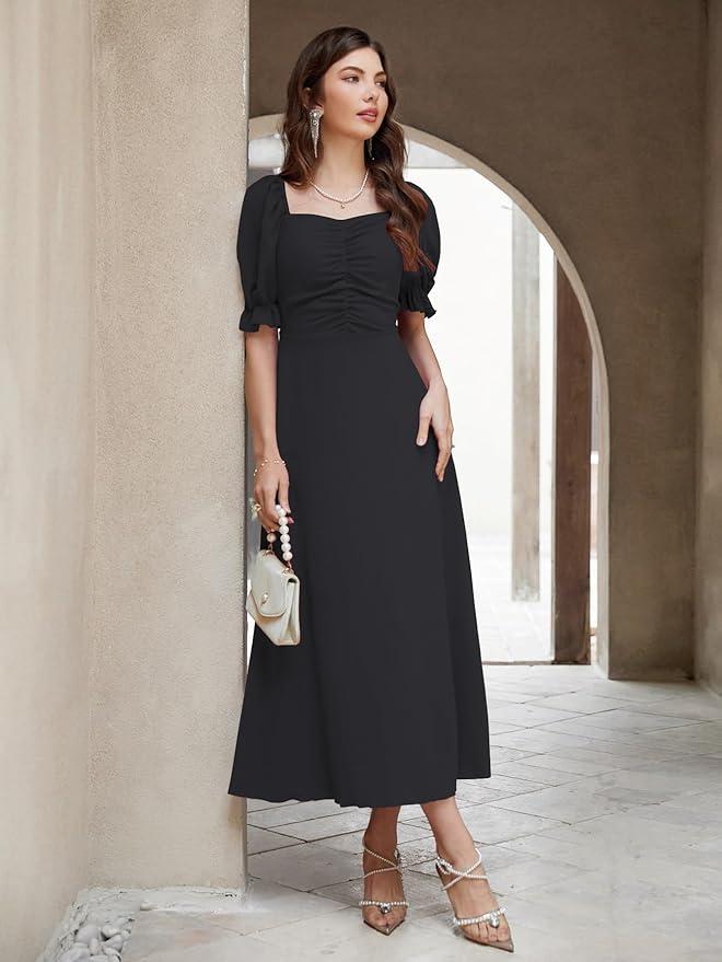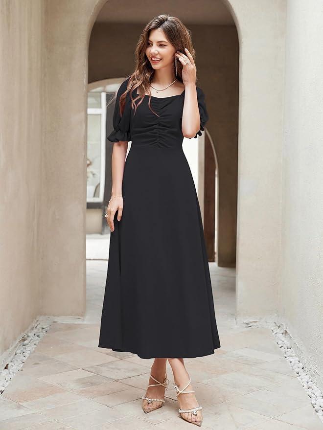 Elevate your wardrobe with this Women's Solid A-Line Ruched Puff Sleeve Maxi Long Dress, designed to deliver sophistication, comfort, and timeless style. Featuring a beautifully crafted sweetheart neckline, soft puff sleeves, and ruched detailing, this dress enhances feminine charm with every movement.