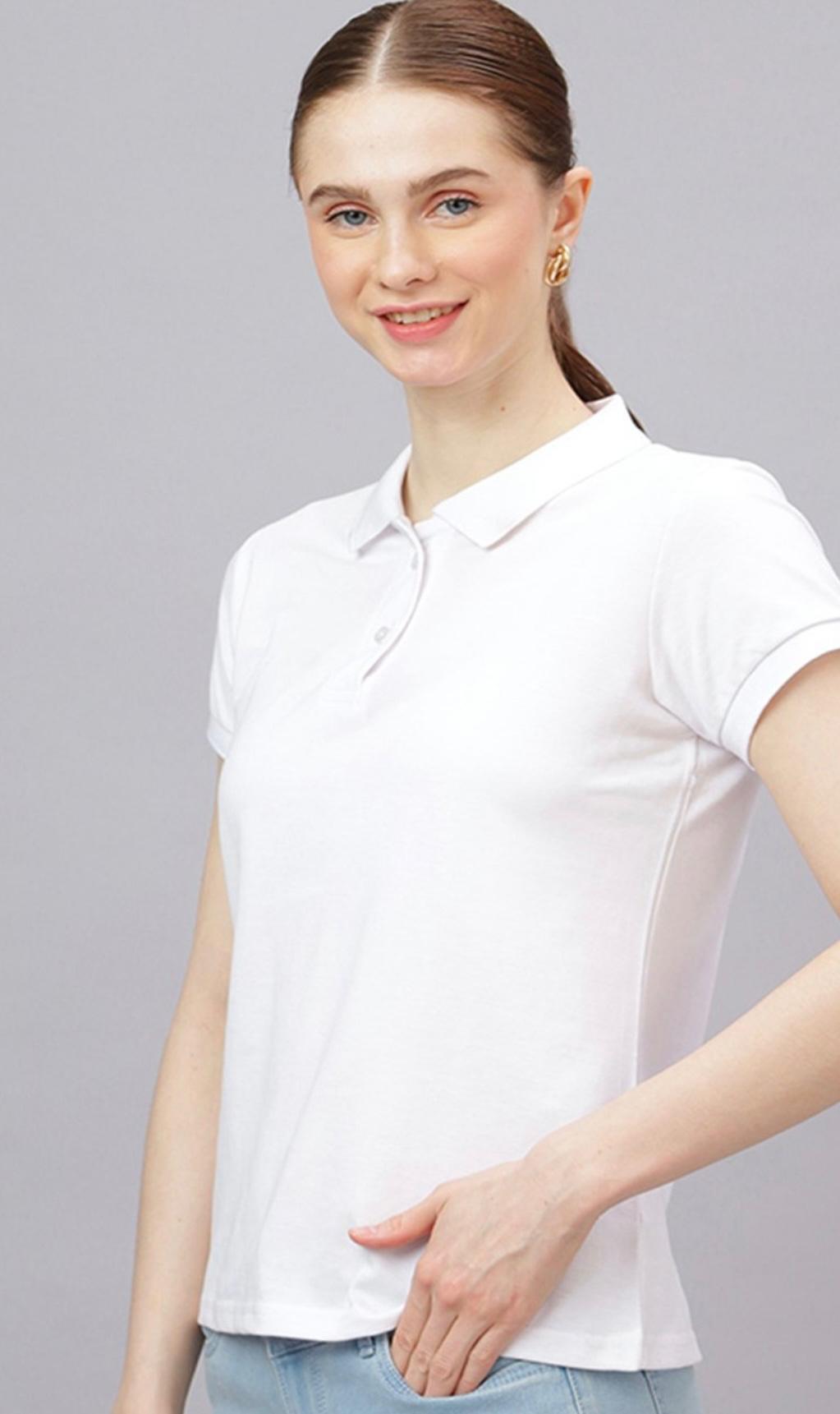 Redefine your everyday style with the Women’s White Solid Polo Collar T-Shirt from Urban Traders. Designed for women who appreciate a balance of elegance and comfort, this polo tee brings a sporty yet sophisticated look to any outfit.