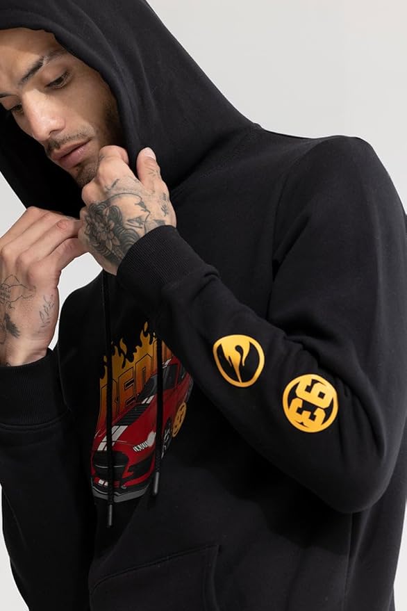 The oversized silhouette paired with a hooded neckline, full sleeves, and ribbed hemline gives a relaxed yet structured feel. The bold graphic back print adds a striking standout look, while the deep kangaroo pocket offers practicality and style.