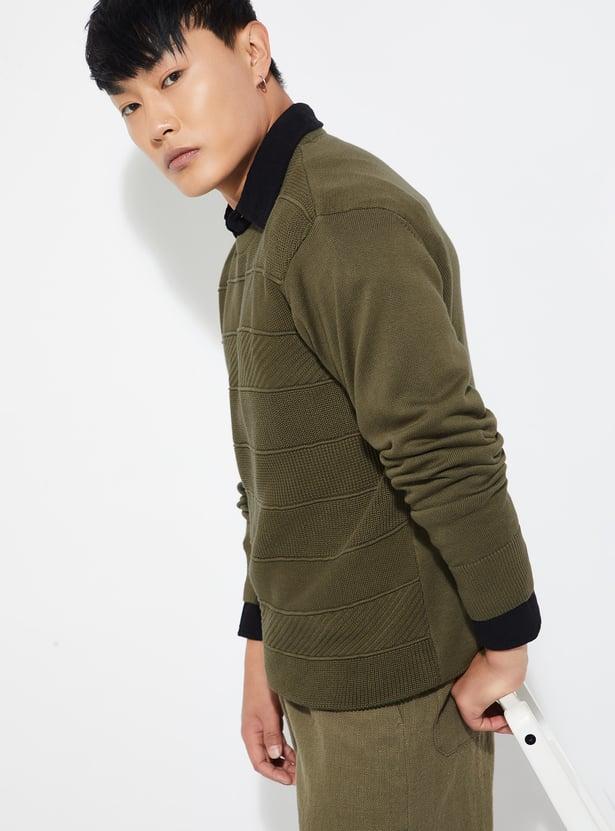 A warm and stylish textured knit sweater crafted with a ribbed crew neck, full sleeves, and a snug hem. Perfect for winter layering or standalone casual wear.