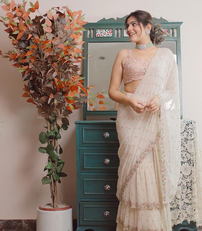 Lightweight, stylish, and beautifully detailed, this saree promises comfort without compromising on glamour. The intricate craftsmanship and flawless design make it an ideal choice for women who want to stand out effortlessly.