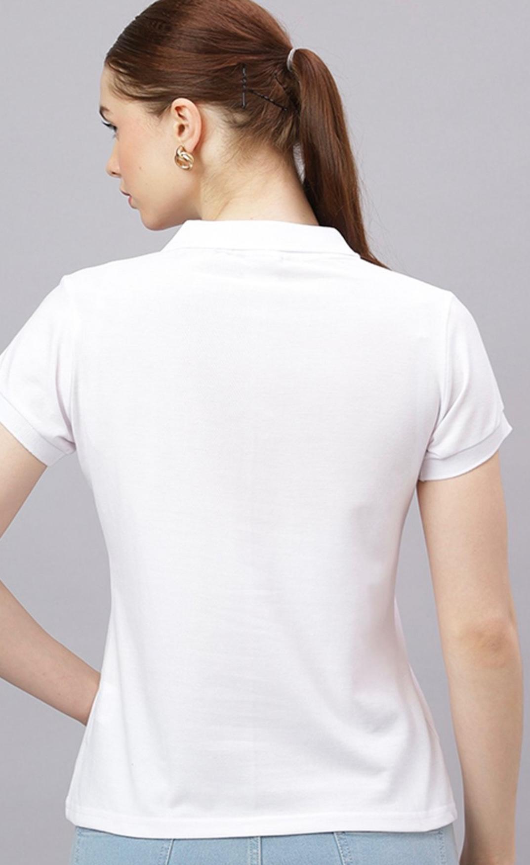 Redefine your everyday style with the Women’s White Solid Polo Collar T-Shirt from Urban Traders. Designed for women who appreciate a balance of elegance and comfort, this polo tee brings a sporty yet sophisticated look to any outfit.